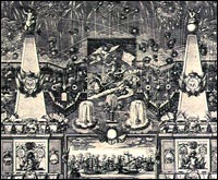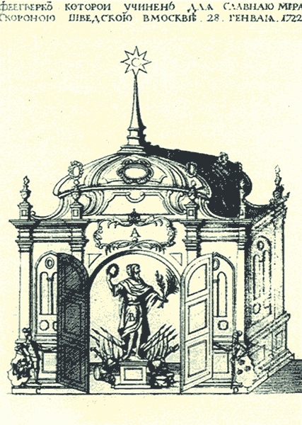 «огненные потехи», в которых высвечивались аллегорические картинки на античные сюжеты. Русскому человеку с его традиционным православным мировосприятием они были непонятны, поэтому воспринимались публикой как деяния царя-антихриста. Только воля и настойчивость царя переломили эти представления и утвердили обычай праздновать Новый год «огненными потехами». Чтобы зрителям новое зрелище стало более близко, по распоряжению Петра два раза было издано специальное пособие «Символы и эмблематика» в 1705 и в 1719 гг. В этом пособии излагался сюжет фейерверка, толковались аллегорические фигуры и символы. Пособие было переведено с латинского на русский, французский и немецкий языки.