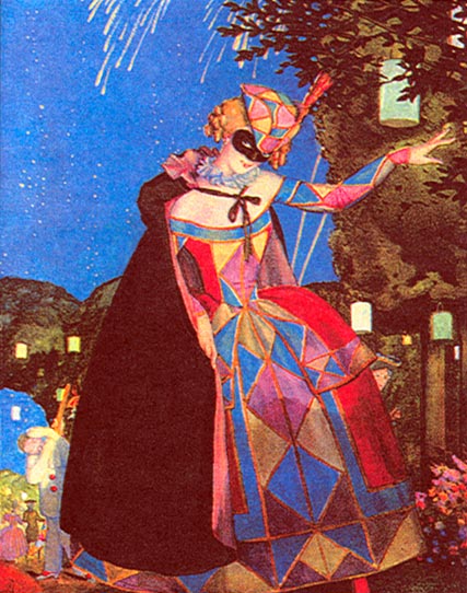 приходить в женских юбках с фижмами, в узких корсетах и высоких прическах — в таком виде с непривычки они просто опрокидывали рядом стоящих людей. Женщины должны были бороться с тучностью, так как на маскарадах обязаны были быть в элегантных мужских костюмах. Маскарады были большим испытанием для людей, ибо они должны были разучить, согласно своему костюму, мужские и женские партии в танцах. Кроме того, маскарады просвещали: каждый должен был знать символику маскарадных костюмов разных времен и народов. При входе проверяли, нет ли оружия, и снимали маску. Маскарад всегда заканчивался ужином и иллюминацией. Постепенно маскарады стали проводить и в частных домах. В Петербурге их устраивали в домах князя Голицына на Невском и Морсаньи в Каменном театре. Все же венецианская традиция не имела такого большого резонанса в России, хотя при Екатерине II в маскарадах участвовали представители всех сословий, которые приобретали билеты в придворной конторе. Маски уже были необязательны, но костюмы сохраняли свое значение.