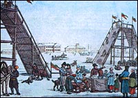 Ж. Делабарт. Ледяные горы в Москве на Неглинной улице во время Масленичной недели. 1795 г.