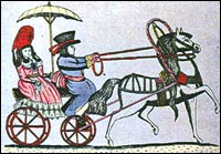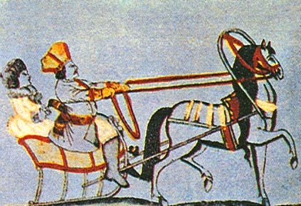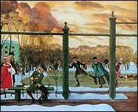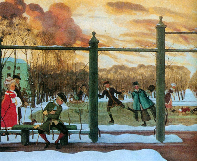 Летом катались в каретах, зимой в санях. Любимым видом зимних развлечений высшего сословия стало катание на коньках. Коньки с закругленными металлическими лезвиями привез в Россию Петр I и научился кататься. Впоследствии многие дворяне приобщились к этой забаве и катались на специально залитых катках.