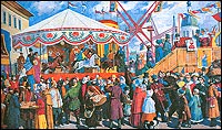 Екатерина II превзошла всех своих предшественников в организации праздников. Она со свойственной ей мудростью вернула народу их исконные, самые важные календарные религиозные праздники, но придала им государственный официальный статус столичных торжеств. Праздники были призваны обличать пороки, восхвалять добродетель и славить наступивший «золотой век» России. К этим праздникам она приобщила все сословия, включая высшее — дворянство. Царица придавала праздникам театрально-интеллектуальный характер. В то время праздничная жизнь напоминала театральные подмостки с четким исполнением ролей и разыгрыванием сюжетов.