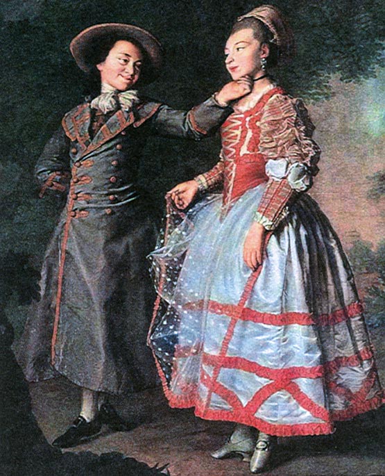 Во второй половине XVIII в. наблюдалось развитие балета. В середине века балеты были аллюзионными (от фр. аллюзия — намек), в которых под видом богинь и богов артисты славили императриц и вельмож. Наиболее известным было «Золотое яблоко и суд Париса». Но все же балет не был равноправным среди других искусств, и его включали в оперные спектакли или давали после оперы. На него оставались немногие зрители, а большая часть шла в карточные и буфет обсуждать только что прослушанную оперу. После открытия в 1756 г. публичного театра в Санкт-Петербурге стали популярны героико-трагедийные балеты — самостоятельное зрелище из нескольких актов. В балете тогда господствовала пантомима, но не танец. Танцовщицы выступали в длинных юбках на каркасах, а танцовщики — в юбках покороче. Туфли на каблуках и парики довершали неудобный для танца костюм. Не случайно танцовщиков называли тогда фигурантами, то есть делающими фигуру. На сцене происходила смена изящных поз и телодвижений, ноги поднимали не выше нескольких вершков от пола. Прыжки исполняли только мужчины-танцовщики. Наиболее известные героико-трагедийные балеты — «Армида и Ринальдо» и «Семира». В конце XVIII в. получили распространение анакреонтические балеты, в которых в духе греческого поэта Анакреонта воспевались приключения мифологических богов, олицетворявших силы природы. Действующими лицами этих балетов были водяные и лесные божества, а декорациями — пастораль. Комические балеты и дивертисменты включали веселые трюки, переодевания и русские пляски. Русские танцовщики учились у итальянских и французских мастеров, которые признавали пластическую пантомиму, но итальянцы были более виртуозны и акробатичны, а французы плавны и жеманны.