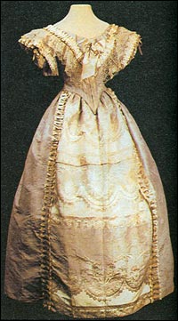 В период романтизма идеалом женщины была изящная и хрупкая персона, которая в специальном кармане юбки носила небольшой томик произведений Ж. Санд, В. Гюго, В. Скотта. Она отличалась бледностью лица и необычайным блеском глаз, хорошо держалась в седле и не пренебрегала охлажденным шампанским. В период романтизма были модны изысканные цвета с вычурными названиями: «горлышко голубя», «утренняя заря», «мечтательная блоха». Материи платьев и верхней одежды были чрезвычайно разнообразны. Носили одноцветные, узорные, полосатые и клетчатые ткани. В 1833 г. «Дамский журнал» утверждал, что розовый цвет господствовал над другими. Розовые платья носили с черными и зелеными отделками. В 1840 г., по свидетельству журнала «Библиотека для чтения», были в моде палевые, зеленые и серо-пепельные цвета. К концу 40-х гг. в моде были темные оттенки всех цветов. Носили плотные ткани, гладкий бархат, тисненый и клетчатый, атлас, сукна, для бальных туалетов — затканную цветами парчу, штофы со сложным узором. В 1845 г. весь Петербург носил клетку.