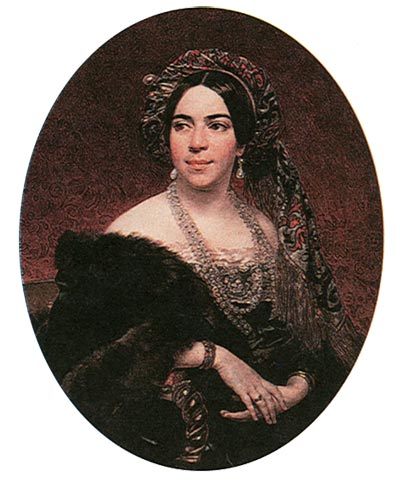 Головными уборами для выездов были навеянные Востоком тюрбаны из вишневого бархата с драгоценностями и перьями, называемые чалмой, береты и чепцы. Тюрбаны также были модны белые атласные, кисейные с золотыми аграфами, перевитые жемчугом, бусами и золотыми лентами или цепочками. Береты были более скромные из цветного атласа или бархата, их украшали перьями. Из украшений в это время носили жемчужные нити. Поверх перчаток надевали парные браслеты и крупные перстни. Лиф закалывали брошью с подвесками, на поясе делали пряжки. Фероньерка, серьги и брошь обычно на женщине были из одинаковых камней. Для балов использовали портбукеты. В 40-е гг. бальные украшения делали из голубого бисера, гагата — бурого угля и бирюзы.