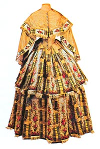 Женские юбки стали делать с кринолинами (от фр. crine — волос, lin — лен). В жесткую льняную ткань стали вшивать клетку из проволоки или конского волоса, как во все времена рококо. Юбка с кринолином имела несколько рядов воланов — от 3 до 16. Иногда платье состояло из нескольких юбок разной длины, причем в середине XIX в. выпускали купонные материи с узором разной величины. В конце 1860-х гг. на кринолине стали оставлять только нижние обручи, которые расширяли подол. Под верхнюю юбку надевали несколько жестко накрахмаленных нижних юбок. Лиф у платьев делали облегающим, круглым или мыском. В середине 60-х гг. женская мода в некотором смысле напоминала мужскую: спереди лиф с двумя мысками как мужской жилет, и сзади — баска, напоминающая фалды фрака. В 1860-е гг. окончательно утвердилась ретроспектива моды XVIII в. — платья со шлейфом, драпировки на бедрах и сзади.