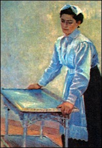 Прислуге женского пола запрещали носить кринолины, турнюры и трены. К платью прислуги полагался белый воротничок и белые манжеты, белый передник. В бедных и средних купеческих семьях прислуга была одета в сарафаны и кофты с юбками, платки, фартуки, чулки домашнего вязания и коты.