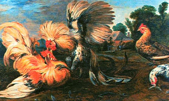 Петушиные бои не были обычной забавой, они были в полном смысле охотничьи. Здесь решались вопросы об охотничьей славе того или иного человека, обсуждались петушиные породы и ловкость боевой птицы.