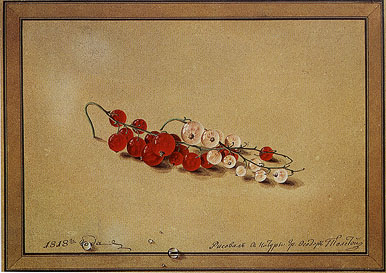 В натюрмортном творчестве Ф.Толстого сочетались элементы высокого стиля большого искусства и любительского рисования, с его типичными натуралистическими, даже иллюзионистическими пристрастиями. Чистых натюрмортов у Ф.Толстого не так много, и принадлежат они все к области графики, хотя и исполнены в цвете. Это рисунки отдельных предметов, скажем, одного цветка или веточки на фоне бумажного листа, однако фон порой выглядит в рисунках мастера не просто абстрактной средой рисунка, а именно бумагой, на которой лежит цветок или веточка, т.е. реальный предмет приобретает качество иллюзорного предмета. Ф.Толстой как бы конструирует идеальные предметы на плоскости листа; он исходит от натуры, но стремится передать ее в некой идеальной форме, каждый его предмет - идеальный представитель своего рода предметов, взятый в лучшую для себя минуту, освобожденный от всего ненужного, случайного.