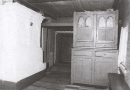 Печи в карельских избах того времени были в основном черные, с трубами встречались редко. В полу устраивался вход в поцполье-польница (ставень). Изба делилась на части занавеской. В дом вело крыльцо, но в карельском доме оно было плохо устроено. Недалеко от изб находились гумна (ригэ) и бани (байна)[60].