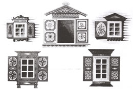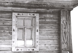 Своеобразен декор северного народного жилища, а именно внешнее и внутреннее украшение дома. Наиболее распространилось украшение больших косящатых окон. К их рамам приделывались наличники – обкладка из досок с прямым карнизом. Сначала резной узор (трехгранно-выемчатым способом) наносился только на карнизы, но затем он появился на всем окладе. На Севере распространилось украшение наличников в виде солнечной розетки. С введением способа накладной резьбы орнамент усложнился – появились узоры в виде геометрических фигур или их частей, растительные орнаменты и изображения птиц.