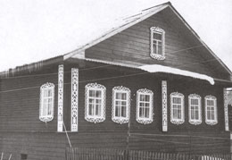 На востоке Вологодского края по соседству с русскими жили зыряне. Как отмечали исследователи, жилище у коми-зырян в XIX-начале XX в. было такое же, как и у русских, только массивнее. Изба-кэрка представляла собой два сруба, покрытых двускатной тесовой крышей, с маленькими тремя окнами по лицу дома и четвертым вверху над голбцем между полатями и печкой. Это своеобразная черта зырянского жилища, и, пожалуй, в основном именно ею оно отличается от русского. Пол в избе делался из тесаных, потолок – из целых бревен. На усадьбах имелись бани. Зырянский дом, как и дом у русских, уже в 1870-е годы представлял собой избу-сени-избу, одна из которых была с черной печью, другая – без печи и полатей. Сзади дома находился двор: поветь со взъездом на нее и хлевами под ней. Отдельно от усадьбы стояли амбар и погреб. План избы позаимствован от русских[61].