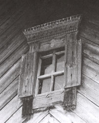 e – резные украшения фронтона и наличников избы в д. Нижняя Вожегодского р-на. Фото С.Н. Иванова, 1986 г. |