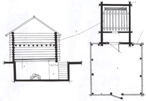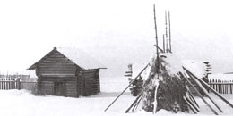 В таежных местах Вологодской земли у охотников и рыболовов были хозяйственные сооружения соответствующего назначения. Охотники строили в лесу избушки, в которых жили во время охотничьего сезона, хранили добытую пушнину и продукты. Лесные избушки – истопки – были срубными, низкими, с глинобитными печами, с дымоходами через окно в стене, без пола, с нарами вдоль стен для спанья, со входом из жердей вместо крыльца, на окнах – бычьи пузыри. Истопки представляли собой образец примитивной жилой постройки. Сооружались на охотничьем становье и срубные кладовые-лабазы (щамьи)[57]. Такие же избушки строили и рыбаки; от охотничьих они отличались тем, что ставились на столбах, приподнятыми над водой для безопасности от половодья.