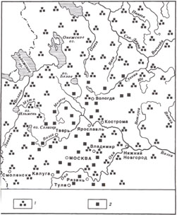 Медленное распространение в городах Южной России бань в конце концов привело к появлению их и в сельской местности. Кроме влияния городской культуры, это было связано с переселениями людей. В миграциях участвовали представители различных сословий и социальных групп. Вероятно, традиция мытья в бане была занесена во многие места еще русскими князьями: известно, что уже в Х-ХШ вв. мытье в бане являлось неотъемлемой частью их домашнего обихода[145]. Династия Рюриковичей к XII в. сильно разрослась, и князья получив мелкие уделы, расселялись на новые земли, принося туда свои обычаи. Распространению «банной» традиции в центральные и южные области способствовали массовые переселения служилого дворянства. Хорошо известно о перемещении Иваном III новгородских бояр и дворян в пределы старомосковских областей. За период с 1483 по 1500 г. на новые места им были переведены две трети мелких землевладельцев[146]. Большие перемещения дворянства произошли после введения опричнины. Поместья, оказавшиеся на территории опричных земель, отбирались у владельцев, а вместо них они получали другие – в разных частях государства[147]. После Смутного времени, когда Смоленск с прилегающей областью отошел к Речи Посполитой, смоленские дворяне были «испомещены» в 16 уездах Московского государства[148]. Переселенцы, видимо, сохраняли на новых местах старый уклад жизни, что со временем могло оказать заметное влияние на соседей.