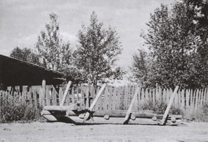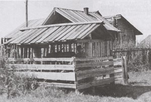 | 6. Деревенская околица, въездные ворота. Д. Вершина Вожегодского р-на. Фото С.Н. Иванова, 1986 г. | 7. Бани на окраине д. Гошкова Вожегодского р-на. Фото С.Н. Иванова, 1986 г. |