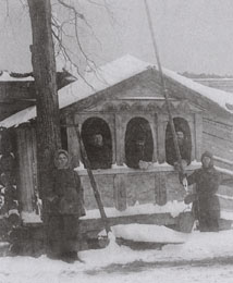 избушки-истопки были на пути из Вельского у. в олонецкую д. Мехреньга. Многие из них в Каргополье использовались летом в сенокос, а зимой на лесозаготовках[58].