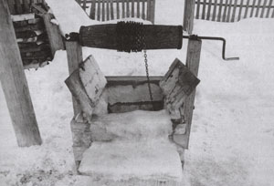 б – колодец-журавль в д. Вершина Вожегодского р-на Фото С. Н. Иванова, 1986 г. |