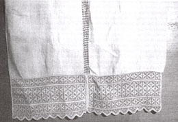 б – скатерть-полустоловка, домотканая с вышивкой крестом, конца XIX – начала XX века из д. Черняково Тарногского р-на |