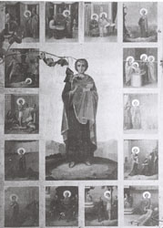 3. Иконы в божницах деревенских изб (а, б) Фото С. Н. Иванова, 1986 г.: а – святой Пантелеймон с житиями (из церкви с. Харовского) в избе д. Вершина Вожегодского р-на |