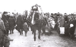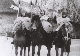 а – проводы Русской Зимы в Великом Устюге в 1987 г.: 1 – гуляние на площади, 2 – катание на лошадях Фото С. Н. Иванова, 1987 г.