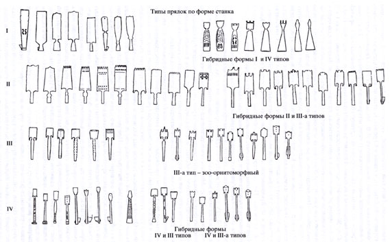 | 1. Типы прялок (I – IV) Рис. И. М. Денисовой |