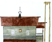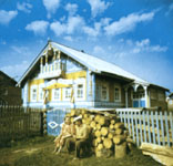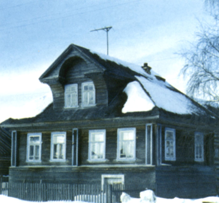 в - пятистенок, обшитый тесом, с резными украшениями в с. Верхний Спас Тарногского р-на