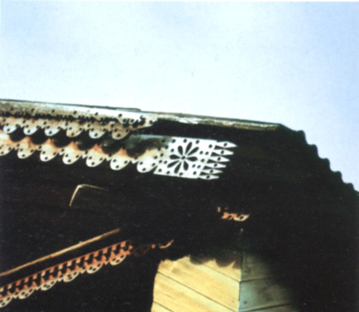 Украшения изб в с. Верхний Спас Тарногского р-на. Фото А. О. Якубовича-Ясного, 1995 г.