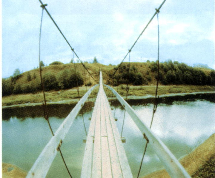 е - висячий мост через реку в с. Верхний Спас Тарногского р-на. Фото А. О. Якубовича-Ясного, 1995 г.