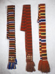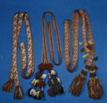а - повседневный женский костюм из Великоустюжского у.: сарафан, рубаха, косынка, пояс (ВУМЗ 23270) б - мужской костюм для сенокоса: рубаха, штаны, пояс, ступни (ВУМЗ. б/№) в - красноборские тканые пояса (ВУМЗ 12974, 8250, 15805) г - женские пояса-покромки: слева из д. Полюдово Бабушкинского р-на, в середине - из д. Анохина Грязовецкого р-на, справа - из д. Кичменьгско-Горолецкого р-на (ВГМЗ, 30030/30, 18129, 25029)