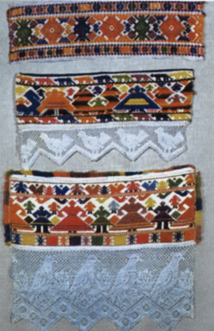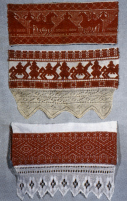 тканье и кружево на концах полотенец из