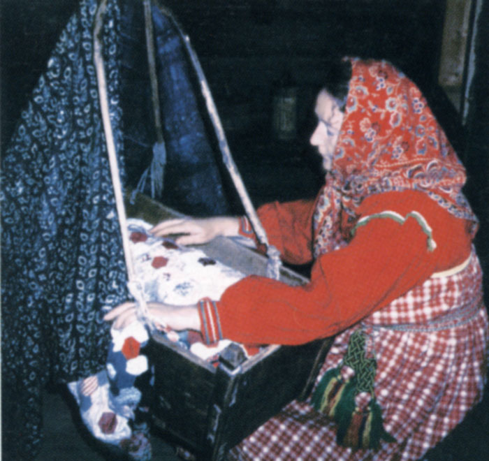 женщина в народном костюме у зыбки в