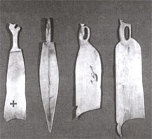 г – трепала для льна из коллекции ВОКМ: 1 (слева направо) – из Тарногского (27082/20), Грязовецкого (12991/2НВ), Верховажского (27858/22) и Харовского (27510/3) р-нов;