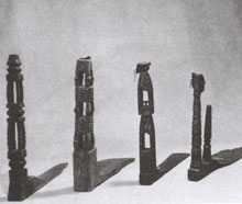г – трепала для льна из коллекции ВОКМ: 2 (слева направо) – из Тотемского (27597/22), Харовского (14433), Тарногского (13807) и Кичменьгско-Городецкого (11477) районов