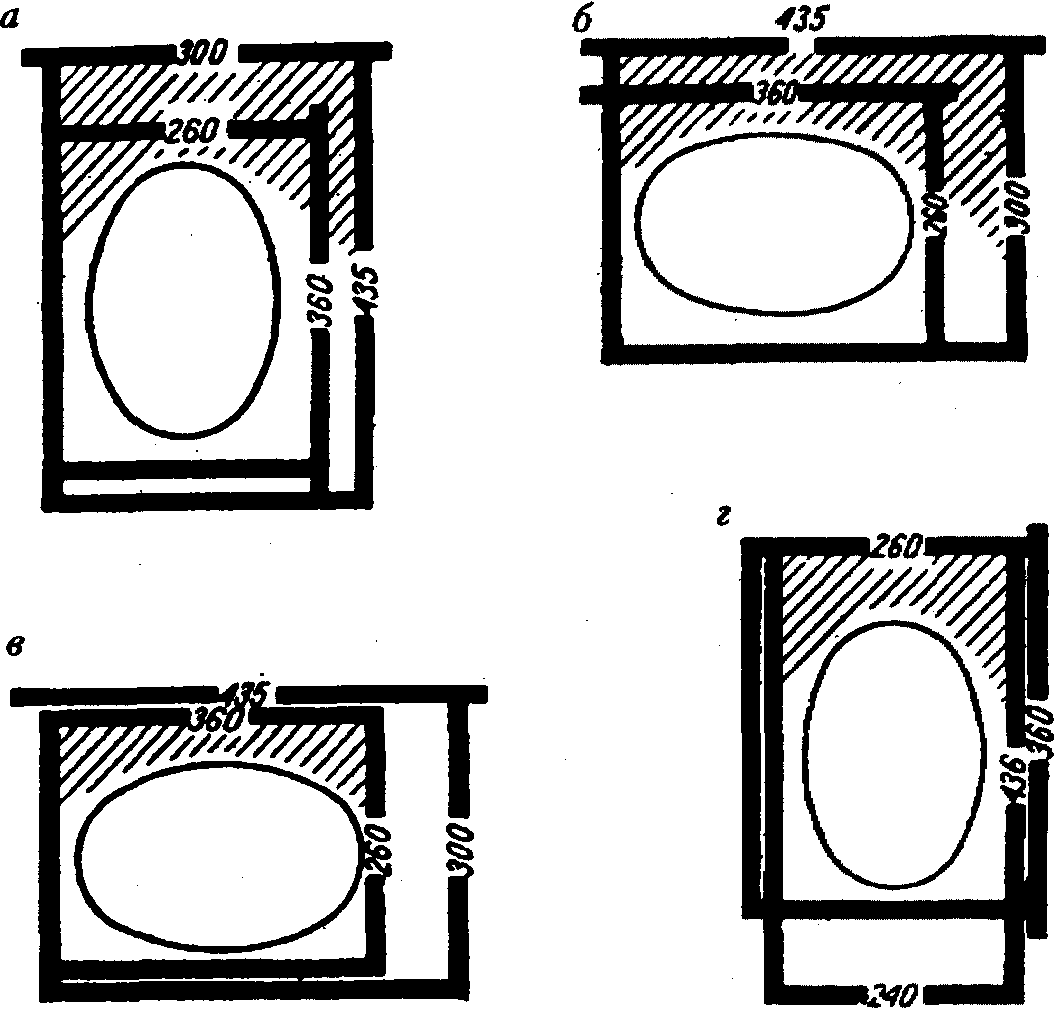 Рис. 42. Перекладка соторамок различных типов ульев: а-из варшавского расширенного в великопольский; б-из даданов-ского в великопольский; в-из великопольского в дадановский; г - из варшавского обыкновенного в дадановский.