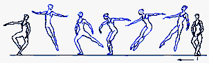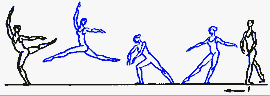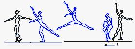 вперёд на 90°, через к-рую переносится по I позиции толчковая нога. Завершается прыжок приземлением на ногу, выполнявшую прыжок, др. нога поднимается назад на 90°. Тело исполнителя во время взлёта принимает почти горизонтальное положение. R. исполняется с поворотом en dedans. Подходом к R. служат sissonne tombee, pas failli, pas chasse, за к-рыми следует короткое pas coupe. R. имеет неск. видов. Исполняется также и с двумя оборотами в воздухе.