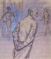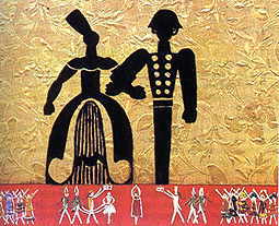 | Эскиз костюма к балету "Клоп". Худ. Б. Мессерер. | Эскиз декорации к балету "Подпоручик Киже". Худ. Б. Мессерер |