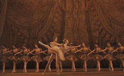 актных балетах "Дочь фараона" (1862), "Царь Кандавл" (1869), "Дон Кихот" (1869, Москва; 1871, Петербург), "Баядерка" (1877) П. постепенно создал свод правил балетного академизма: эти постановки отличались мастерством композиции, стройностью хореогр. ансамбля, виртуозной разработкой сольных партий: архитектоника танца уподоблялась структурным формам музыки, а система выразительных средств - муз. образности. В спектаклях П. формы дивертисментной сюиты выполняли существенную роль. В балетах с благополучной развязкой такая сюита венчала танц.-драм. действие, в балетах-трагедиях - предшествовала развязке. Внутри спектаклей П. строил развёрнутые хореогр. сцены, в к-рых формировались пути развития симф. танца, сначала поставленного на музыку, далёкую от симфонизма ("Тени"). Здесь же разрабатывались формы хореогр. миниатюры ("Оживлённый сад" на муз. Л. Делиба в "Корсаре"). Среди одноактных балетов П. выделялись "Сон в летнюю ночь" на муз. Ф. Мендельсона к комедии У. Шекспира (1876), "Испытание Дамиса" и "Времена года" (1900). Вершина и итог творчества П. - сотрудничество с великими рус. композиторами-симфонистами П. И. Чайковским и А. К. Глазуновым. Опыты симфонизации балетного танца получили прочную основу в партитурах "Спящей красавицы" (1890) и "Раймонды" (1898). В "Спящей красавице" муз.-хореогр. кульминации - четыре адажио каждого акта - дали непревзойдённые примеры поэтически обобщённой образности танца. В "Раймонде" на материале трёх характерно-классич. муз. сюит была новаторски разрешена проблема взаимодействия классического и характерного танца. Шедевром рус. хореографии является па де де Одиллии и принца Зигфрида. Лучшие балеты П. ставятся на сценах мира как выдающиеся образцы наследия 19 в. Творческая деятельность П. в России продолжалась более полувека и представлена следующими его работами (помимо указанных выше).