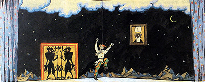 сочетались в лучших работах Б. с неизменной поэтичностью и "живописным" видением целого. Эти качества проявились в крупнейшем создании Б. - оформлении балета "Петрушка" (1911, балетм. Фокин; Б. - соавтор либр.) с его ироничным переосмы-