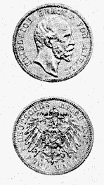 | Германия, Вендский мон. Союз, марка 1546, серебро | Швеция, 4 марки 1608, серебро | Герцогство Ангальт, 5 марок 1896, серебро |