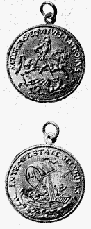 МЕДАЛЬ С РОГОНОСЦЕМ (нем. Hahnrei medaille), назв. медали, чеканенной в насмешку над мужьями-рогоносцами. Напр., на жетонах 17 в., чеканенных в Нюрнберге, изображен на л. с. мужчина с оленьими рогами верхом на петухе (нем. Hahnrei от Hahn - петух), а на о. с.- сундук с надписью "Das kommt in die Hahnrey-Lade" (нем.-"Поместим это в сундук для рогоносцев"). На л. с. серебр. медали К. Вермута изображен журавль, грудь к-рого представляет собой человеч. лицо и к-рый щиплет клювом это лицо за нос, на о. с.- олень с ветвистыми рогами и двойная круговая легенда "Ich trage die Horner, da6 Jederman schaut, ein ander tragt solche, der es nicht traut" (нем.-"Я ношу эти рога, чтобы каждый видел, что и др. носит подобные же, хотя тому не верит").