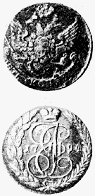 МЕДНАЯ КОПЕЙКА, полноценная медная ходячая монета, введенная в России Петром I (1689-1725) и вытеснившая денгу-серебр. копейку; чеканились монеты в 5, 2, 1, 1/2 и 1/4 копейки. Т. к. стоимость меди часто менялась, она устанавливалась специальными указами. В 1703-1741 из 1 пуда (=16,381 кг) чеканилось медных монет на 20 рублей. Стоимость 1 рубля соответствовала стоимости приблизительно 819 г, т. о. чеканившийся в это время пятак весил ок. 41 г. В 1725-1726 квадратная плата в 1 рубль весила ок. 20,5 г. После 1741 временно из 1 пуда чеканили только 16 рублей - по 1025 г меди на каждый рубль, ок. 51 г на каждый пятак. Кол-во медных монет, чеканенных из 1 пуда, в дальнейшем все более увеличивалось. Так, до 1867 (до замены полноценных ходячих монет разменными монетами) чеканились очень неудобные медные монеты, в большом размере к-рых народ усматривал свидетельство их низкой стоимости. Л. с.- монограмма царя, о. с.- двуглавый орел и номинал в букв. изображении. На монетах нек-рых выпусков номинал обозначался также точками для облегчения его определения. В 1867 ходячие медные деньги были заменены разменными монетами, когда из пуда меди стоимостью 10 рублей чеканилось медных монет на 50 рублей.