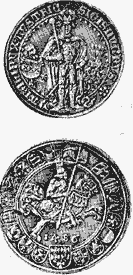 РЕГЕНСБУРГЕР (нем. Regensburger, Ratis-ponenser), назв. типа пфеннига, чеканенного совместно герцогом Баварским Отто III и епископом Регенсбургским Генрихом в Регенс-бурге после 1290: л. с.- в рамке из звезд над зубчатой стеной портрет герцога между буквами "Н" и "О" (Heinrich und Otto или Herzog Heinrich); о. с.- погрудные портреты герцога и епископа в двойной стрельчатой арке, в квадрате, в центре следов от четвертного удара. Этот тип пфеннига длит. время чеканился без изменений, т. ч. его переняли и др. нем. тер., напр: в 1366 Амберг, позже вся Франко-ния. Под назв. "ратиспонензер" его чеканили также др. мон. сеньоры: с буквами "RA", "RN" или "RS" пфальцграф Рупрехт I (1353- 1390) в Амбахе, Ноймаркте и Зульцбахе. На Р., чеканенных при имп. Карле IV (1347- 1378) в Эрлангеле и Лауфе в 1363-1374, были изображены две головы в коронах. Подражания Р. чеканил также бургграф Фридрих V (1372-1398) в Байройте, Лангенценне и Нойштадте-на-Айше, Фридрих II (1381-1428) в Кобурге, Ульрих фон Гогенлоэ (1371-1396) в Эрингене, епископ Майнцский Конрад фон Вайнсберг (1390-1396) в Мильтенберге и Нойштадте и др. Изображение на монете частично менялось из-за замены одних букв другими и включения гербовых фигур. Самые пер-рые Р. весили ок. 0,825 г, с сер. 14 в. их вес снизился до 0,80-0,70 г, а к концу века ухудшилась и проба, сначала составлявшая 12 лотов. В 1354 1 Р.=4 геллерам==2 вюрцбургским пфеннигам. В 1385 из 8-лотовой нюрнбергской марки (237,52 г) чеканили 400 монет с ч. в. 0,295 г серебра при о. в. 0,594 г. В к. 14 в. на смену Р. пришли др. монеты.
