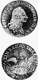 РЕЙХСТАЛЕР (нем. Reichstaler - имперский талер), назв.талера, чеканенного в соответствии с имперской мон. стопой Свящ. Рим. империи герм. нации (до 1806) с 1566; равнялся 68 крейцерам, на 1 чистую марку шло 9 талеров с ч. в. 25,98 г. Стоимость Р. увеличивалась по мере ухудшения крейцера сперва до 72, а в 1580 до 90 крейцеров. Его чеканили в большом кол-ве светские и духовные князья и обладатели мон. регалии гг. в Брауншвайг-Люнебурге, Саксонии, Мансфельде и др. феодальных тер., владевших богатыми серебр. рудниками. Гос-ва на сев. Германии также чеканили Р.= =24 грошенам или 32 шиллингам. Уже во второй пол. 16 в. Р. стал торговой монетой, распространившись далеко за пределами Германии. Т. к. юж. обл. империи продолжали считать на гульдены и крейцеры, в Германии образовались гульденовая и талеровая зоны. Р. и рейсхгульдинер имели след. изображение: л. с.- портрет мон. сеньора или герб г.; о. с.-имперский орел, на Р.-без номинала либо с цифрой "24" (ерошена) или "32" (шиллинга) в державе, на рейхсгульдинере - цифра "60" (крейцеров). После появления в сер. 18 в. новых мон. стоп чеканка старых Р. была прекращена. См. Конвенционная стопа.