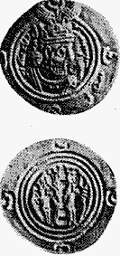 САСАНИДСКАЯ МОНЕТА (нем. Sasanidenrniinze), назв. монет династии Сасанидов, свергнувшей в 224 н. э. Аршакидов (Арсакидов) (династия Парфянского царства) и просуществовавшей свыше 400 лет, до нашествия арабов в 651. Правители династии Сасанидов ввели новый вид чеканки монет, используя тонкие мон. заготовки. Для серебр. драхм, к-рые чеканились гл. обр., был сохранен обычный эллинич. вес - ок. 4 г. Наряду с серебр. чеканились также монеты в золоте и меди. Для изображений на С. м. характерны портрет правителя - алтарь огнепоклонников между двумя фигурками. Отд. элементы изображения менялись на протяжении господства Сасанидов. Поле монет отделено от гурта точечным кругом (или неск. кругами). Т. к. у каждого царя была своя корона, то их портреты, как и имена, обычно названные в легенде, имеют большое значение для установления хронологич. порядка чеканки монет. Со времени правления царя Ездигерда I (339-420) на о. с. всех драхм имеются сокр. обозначения м. дв., расшифровка к-рых - одна из важнейших задач изучения С. м.
