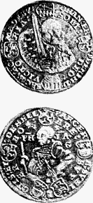 Так наз. талер Гуса, впервые чеканенный в 1537, подражание 17 в., серебро