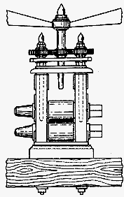 Система валов для плющения цанов; верхним рычагом регулируется расстояние между валами, зубчатыми колесами и шпинделями