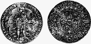 ШРЕККЕНБЕРГЕР (нем. Schreckenberg Engelgroschen, Muhlstein), назв. саксонскс грошена, чеканенного с 1498 из серебра рудников горы Шреккенберг по 52 монеты 13 17/20-лотовой эрфуртской марки (235,4 л.с.- гербовый щит курфюршества, подд живаемый ангелом, о.с.- четырехпольный гербовый щит. Нар.-обих. назв. Ш. "жернова" (нем. Muhlsteine) объясняется тем, что первые Ш. чеканились в бывшей мельнице, перестроенной под м. дв. Т.к. 1 Ш.= гольдгульдена и одновременно 3 чиншевым грошенам, а значит, 1 гульден=21 чиншевому грошену, то возникло понятие стоимости "мейсенский гульден", равный 21 грошену. Курфюрст Саксонский Август (1553-15 установил в 1558 стоимость Ш. в 1/6 гульдена (==3 1/2 грошена). Ч.в. первых выпусков 4,206 г серебра при о.в. 4,497 г 1558 ч.в. 4,54 г при о.в. 5,03 г. Ш. чеканились в Саксонии и Тюрингии до 1571. Вследствие высокопробности и надежности выпуска имели хождение далеко за пределами cвоей страны. Так, с 1520 они были распространены в Липпе (Вестфалия), а также в Нидерландах, где Ш.=4 стейверам. Во время кризиса периода Тридцатилетней войны появился др. вид Ш., подорвавший его добрую славу. Это были низкопробные монеты, имевшие такую же л.с., а на о.с.- 2 ангела и 3 гербовых щита. Чеканенные из низкопробного серебра в огромных кол-вах, эти Ш. равнялись 4 грошенам или 12 крейцерам, двойные Ш.- 8 грошенам или 24 крейцерам.