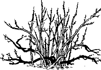 | Рис. 4. Обрезка загущенного куста черной смородины (черным цветом показаны ветви, подлежащие обрезке) |