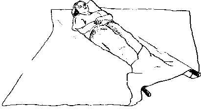 Использование одеяла на носилках позволяет согреть пострадавшего и защитить его от резких толчков и тряски. Одного одеяла, как правило, бывает достаточно, хотя лучше применять два одеяла.