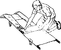 Простейшие брезентовые носилки используются для поднятия пострадавших на более сильные носилки или в машинах скорой помощи.